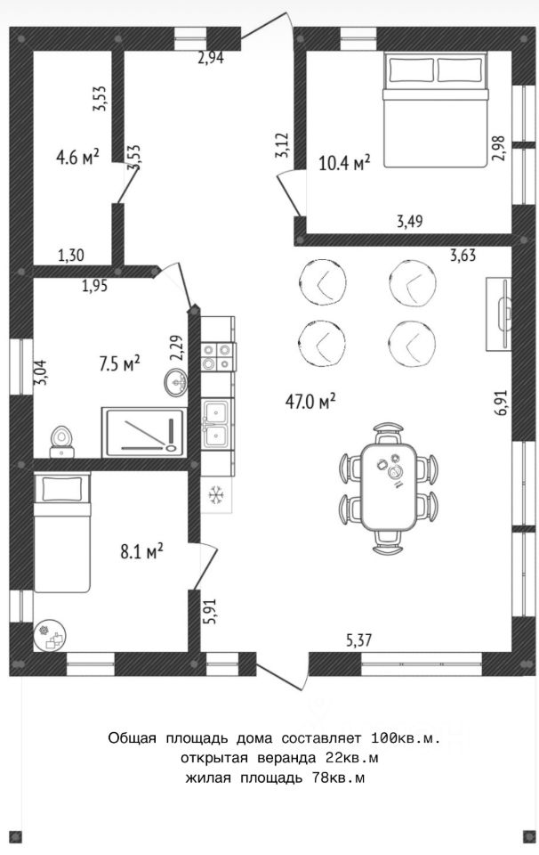 Общая площадь80 м2