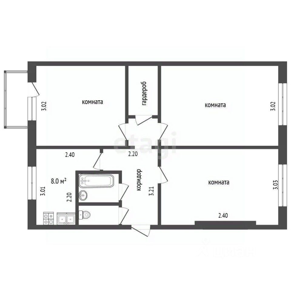 продам 3-к, Тулиновский проезд, 86 850 000 ₽