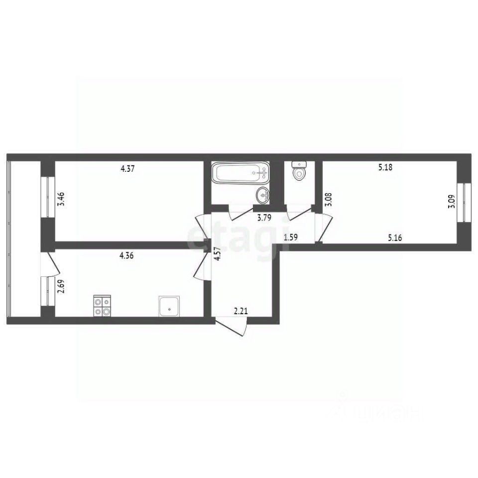 Дом кирпичный 2008 постройки. Современная планировка квартиры на две стороны общей площадью 65,1 кв.м. Кухня - 16 кв.м. с выходом на балкон. Две изолированные просторные комнаты.