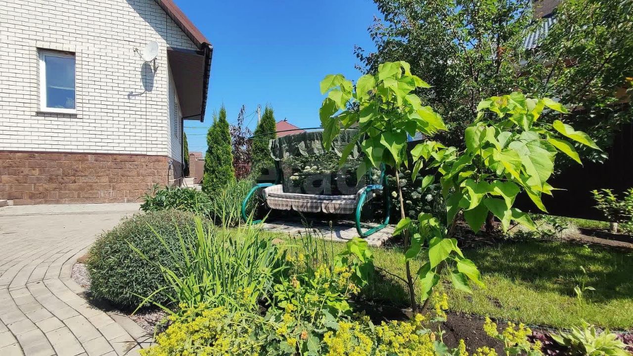 Особая гордость хозяйки дома - это , конечно, внутренняя часть двора с большим количеством растительности Все продумано и выполнено до мелочей . На участке прекрасно сочетаются плодовые деревья и кустарники с декоративными . Большое количество цветов . Много редких сортов насаждений . Площадка для отдыха в тени березы Зона барбекю Декоративные садовые фигуры Открытая веранда с видом на участок .