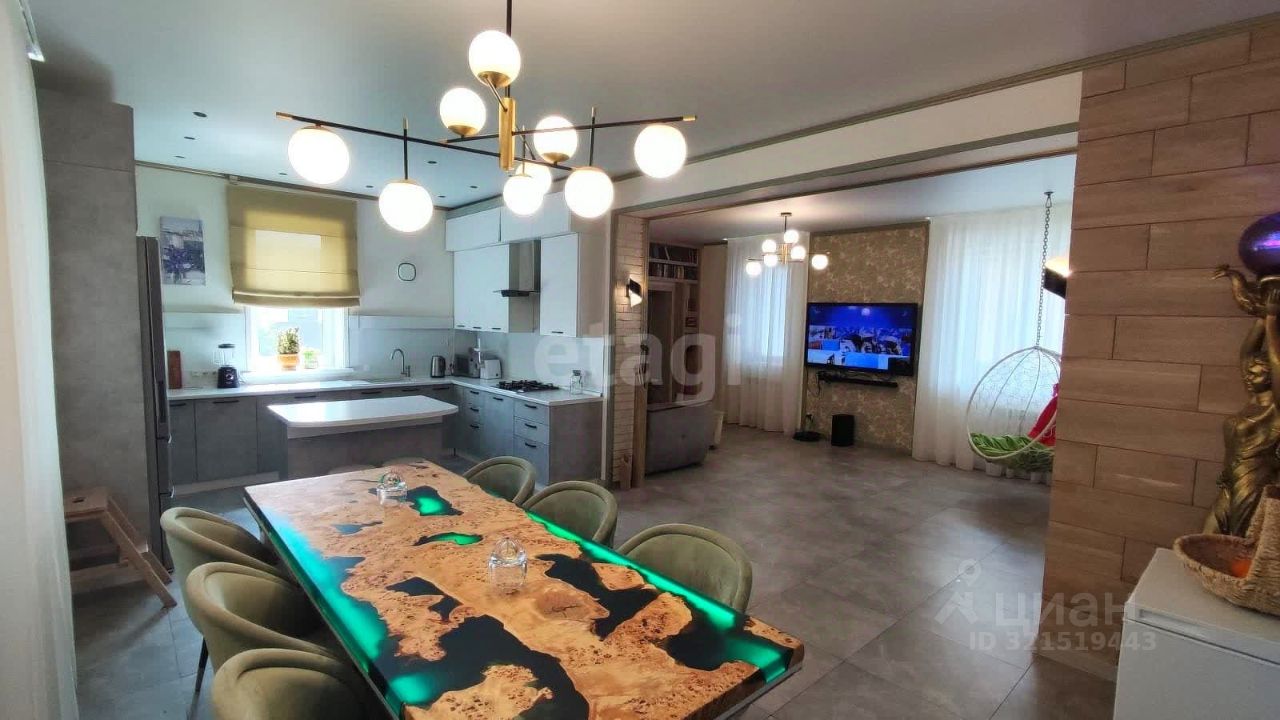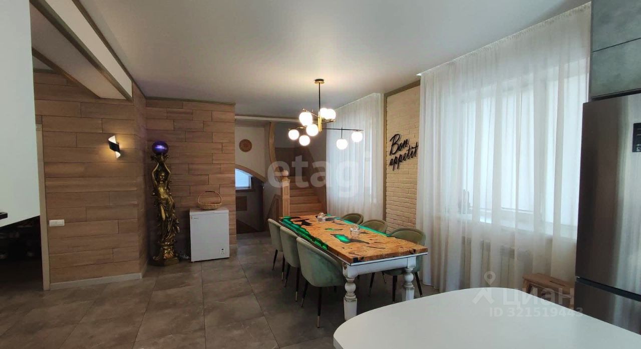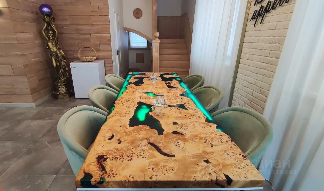 К примеру : при отделке лестницы использовалась древесина вяза Карагача - одна из ценных пород дерева для производства мебели . Также при изготовлении обеденного стола использовался слэб карагача , залитый эпоксидной смолой с подсветкой. Вся мебель и бытовая техника , включая станки в подвале , остаются новому собственнику , за исключением сувениров , и подарков .
