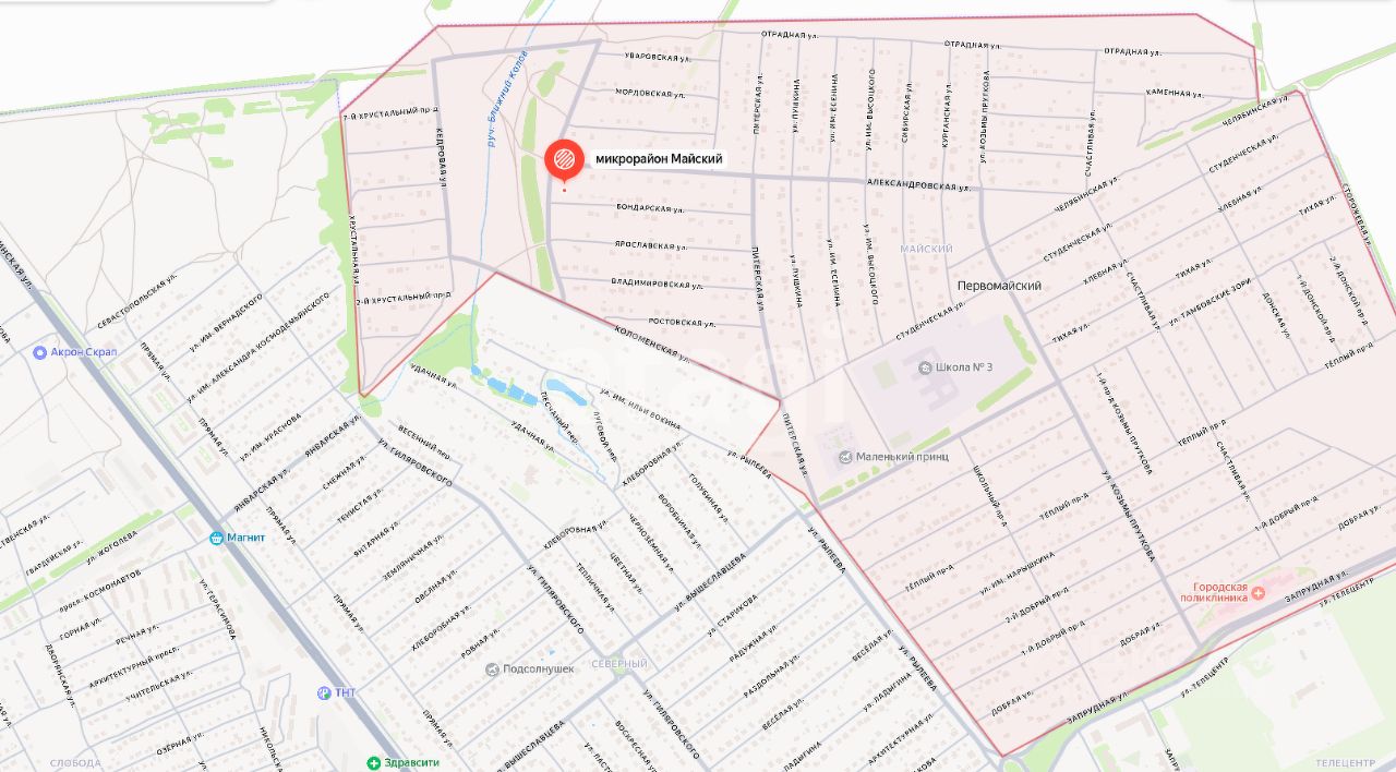 Земельный участок для индивидуального жилищного строительства расположен в микрорайоне Майский на улице Высоцкого.