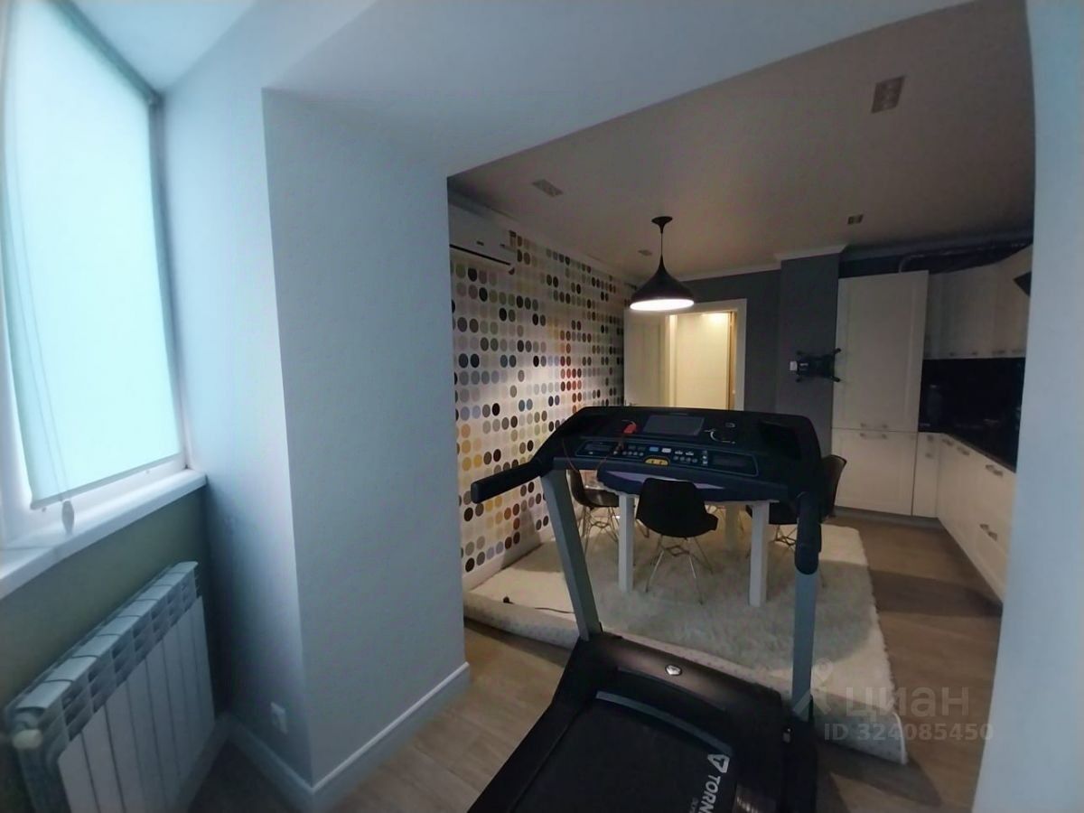 Просторная кухня, 15 кв метров, объединена с лоджией - перепланировка узаконена. Квартира подходит под ипотеку. Современная кухонная мебель, итальянская бытовая техника. Тёплый пол. На лоджии есть место для занятий спортом или посиделок с чашечкой чая.
