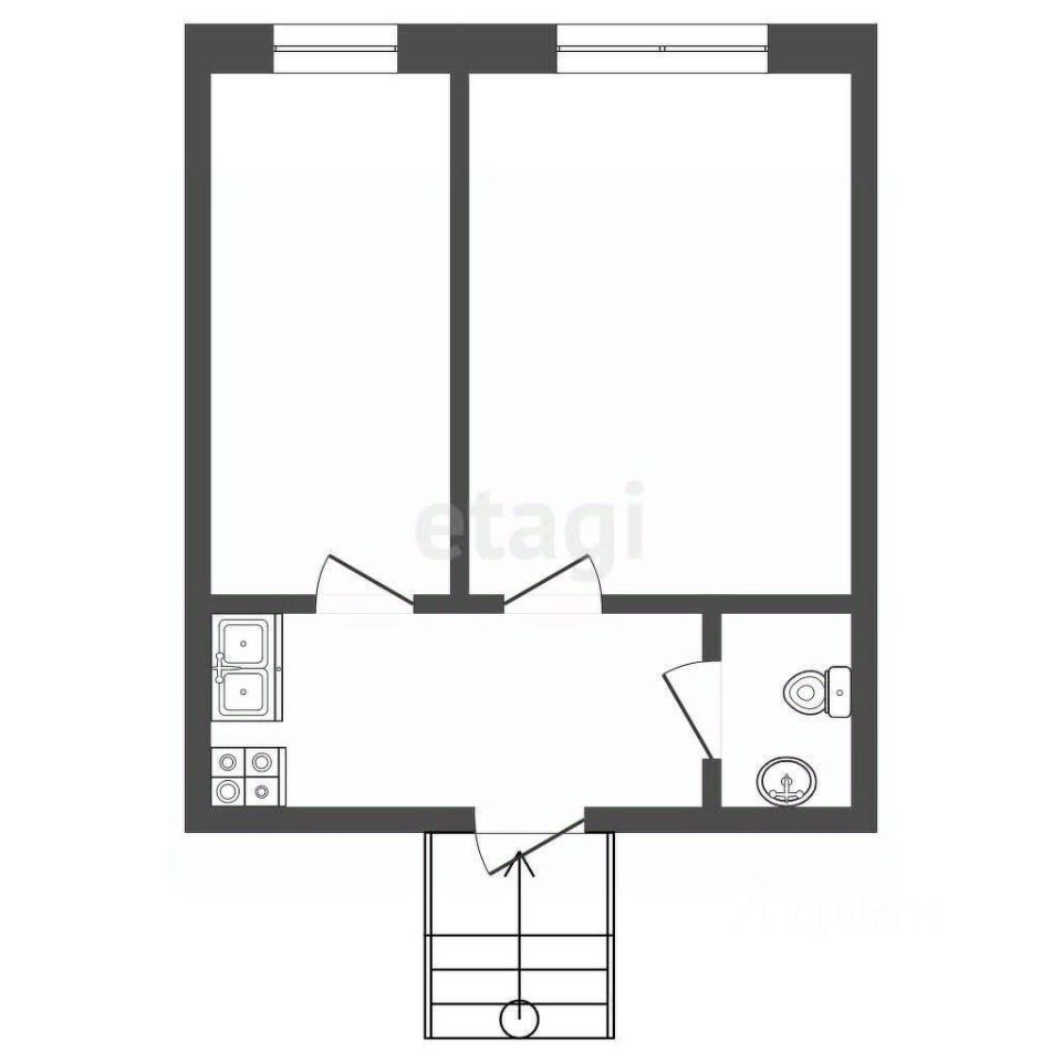 Продается двухкомнатная квартира общей площадью 22.4 кв. м на втором этаже двухэтажного кирпичного дома в центре города.