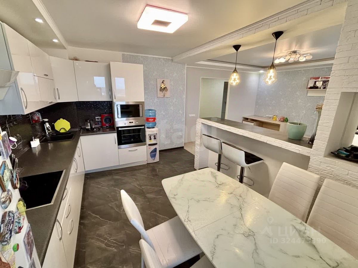 О квартире: - площадь 76.1 кв.м, - не угловая, не торцевая, - окна выходят на обе стороны дома, - современный качественный ремонт, - раздельный санузел в плитке, - просторная кухня-гостиная, - вся мебель и техника, представленные на фото, остаются новым владельцам